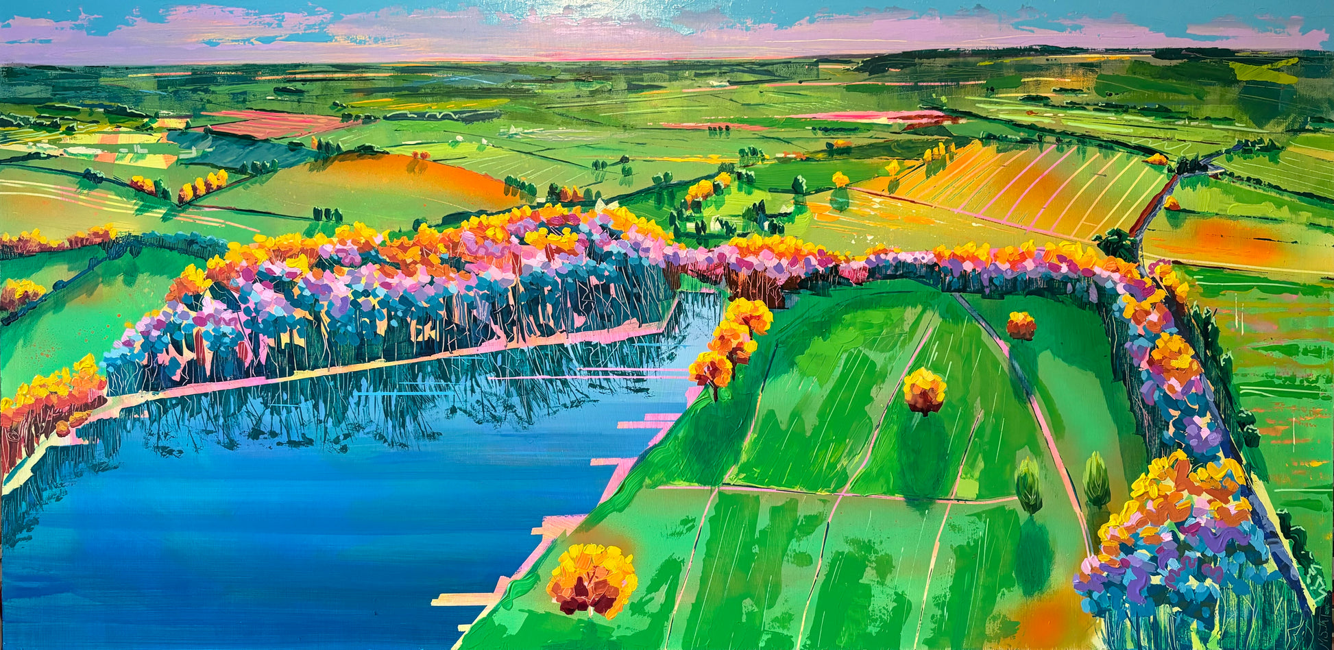 Large scale contemporary artwork representing the beautiful Corsham Court as seen from the air. This impactful and stunning artwork will transform a neutral room and elevate your wall space.
