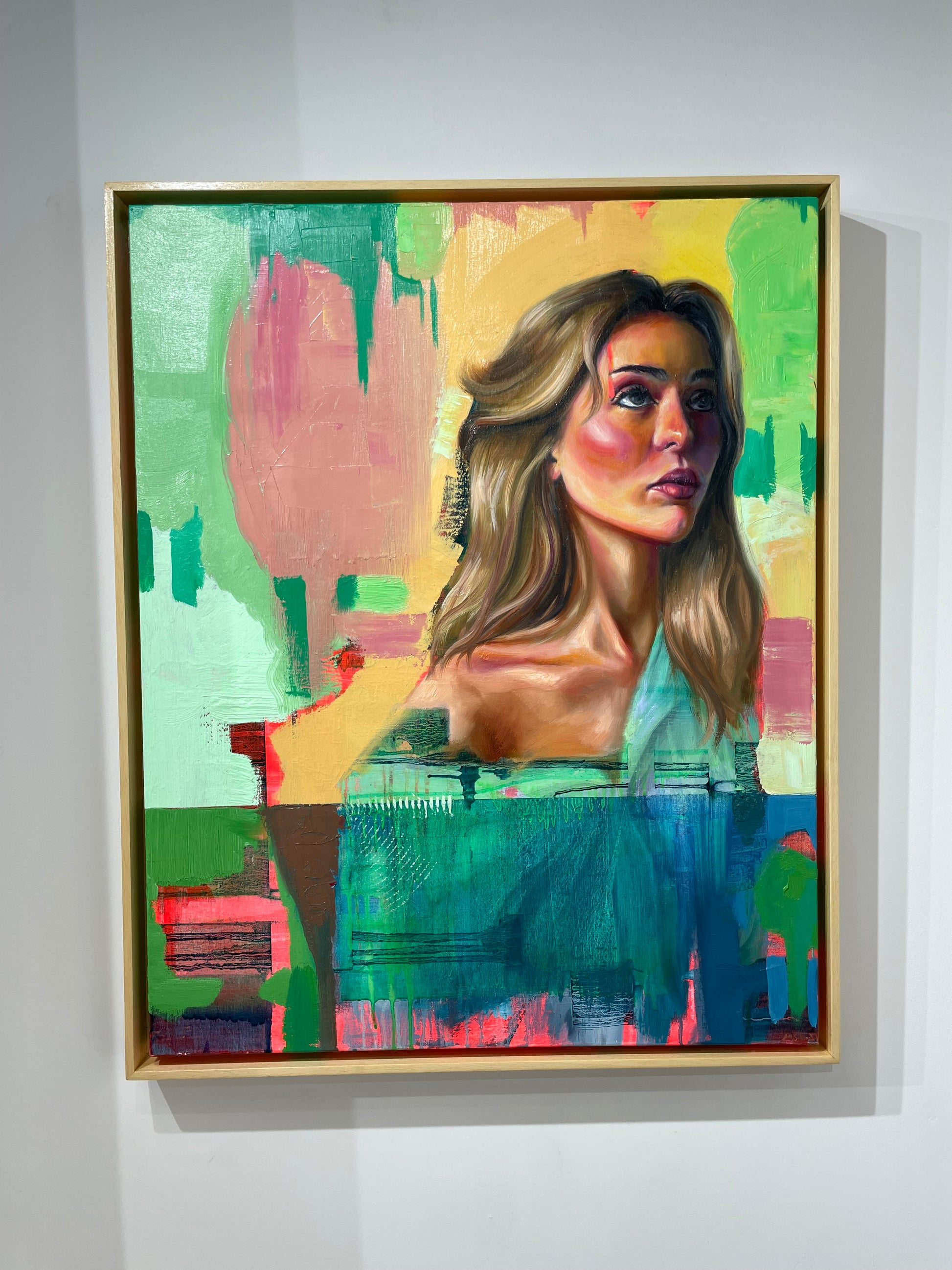 An exquisite oil portrait with a an abstract background echoing nature and our changing environment. With mellow pastel colours, this piece feels calm and reflective and would make a fantastic addition to any discerning art lover’s collection.