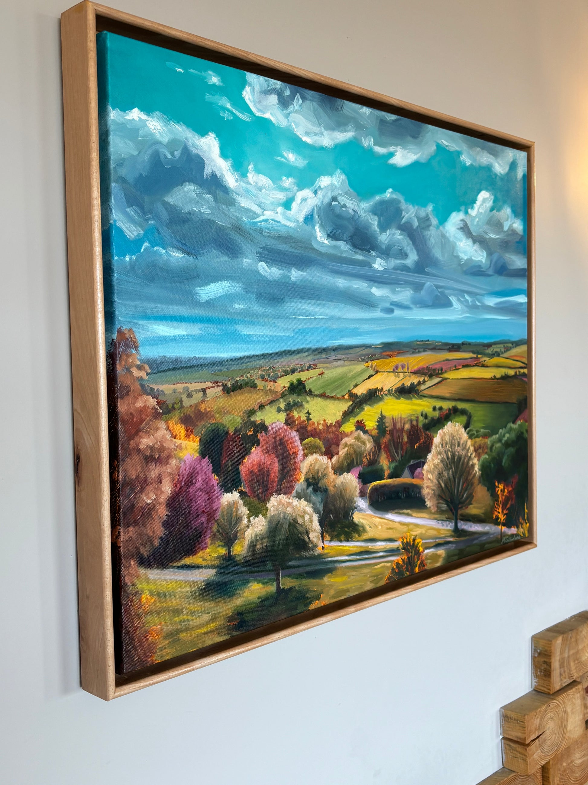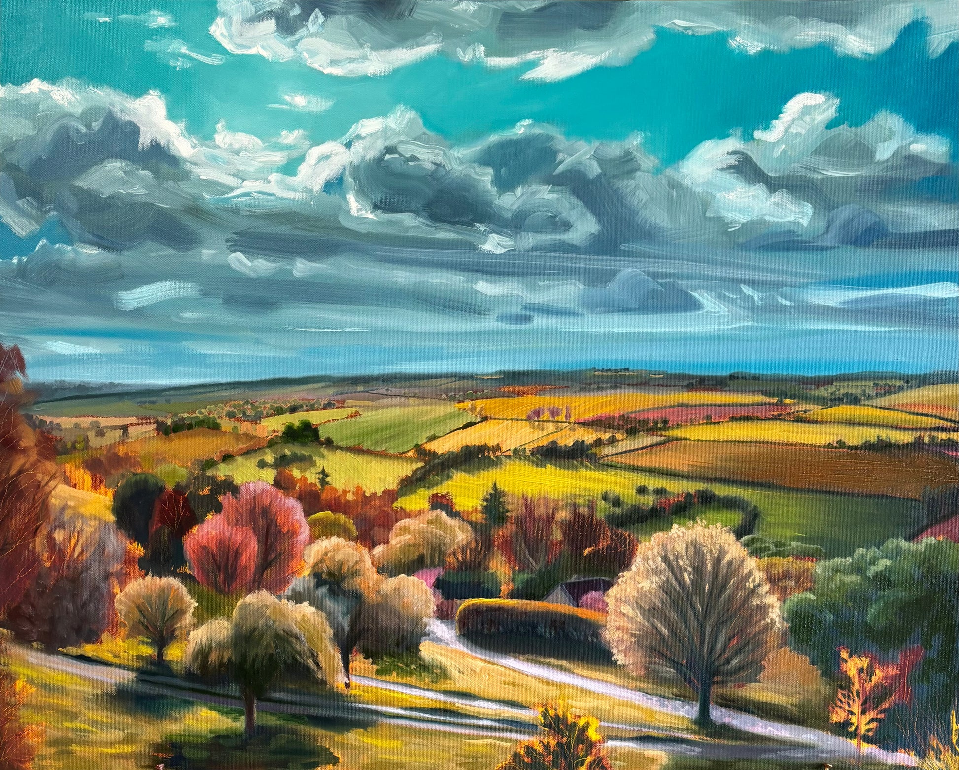 The reference photo for this piece was taken on a run during a glorious summer’s evening. The view from near the Quarryman’s Arms looks over Box and the By Brook Valley.